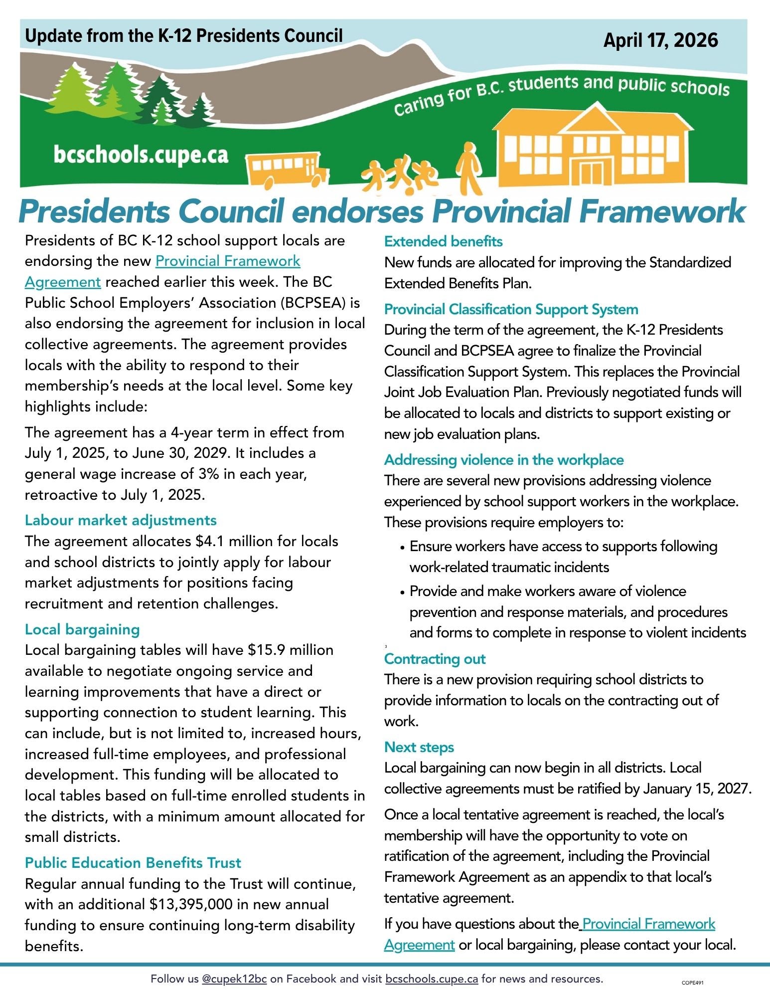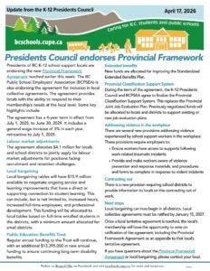 • K-12 provincial bargaining update – We have a deal: provincial bargaining committee reaches tentative agreement